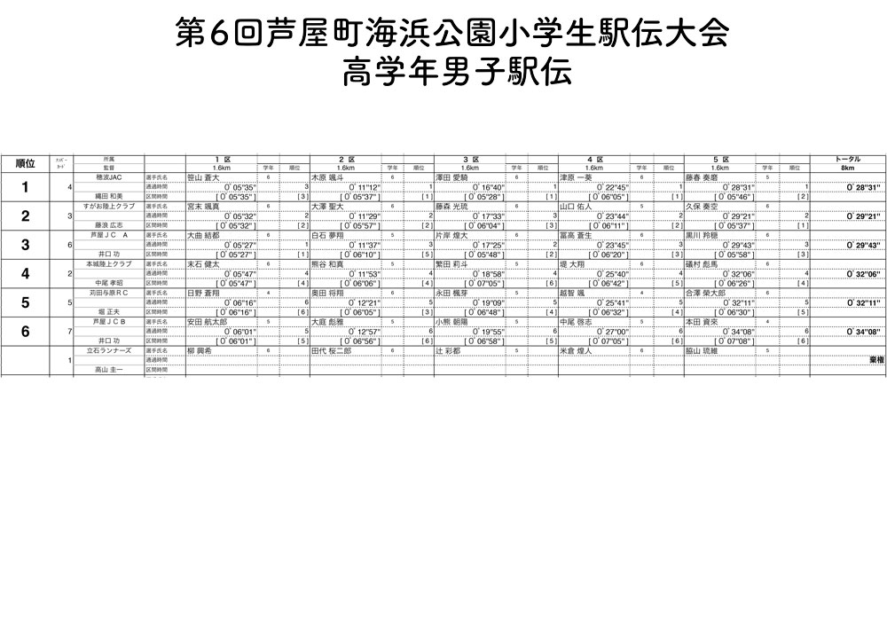高学年男子駅伝記録
